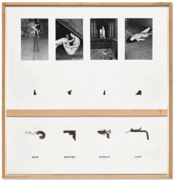 The top photography lot by High estimate was lot 166, Hannah Wilke, Draw/Provoke/Attract/Gain, 1969-1981, estimated at $250000-350000; it was also the top photography outcome of the sale at $317500 (image above, via Christie’s).