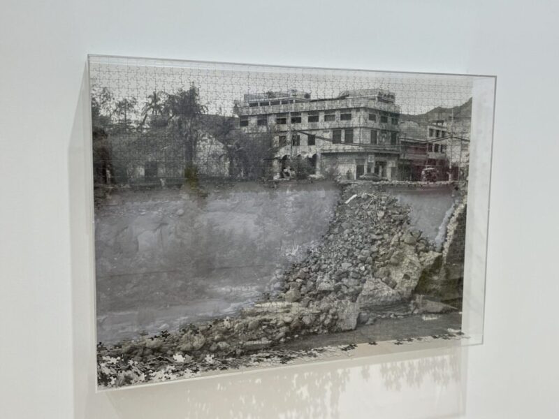 Puzzle pieces falling like rubble to reveal a faded vision of the land underneath. Carlos Garaicoa (from 2022) in the 30×30 group show at Jane Lombard Gallery.