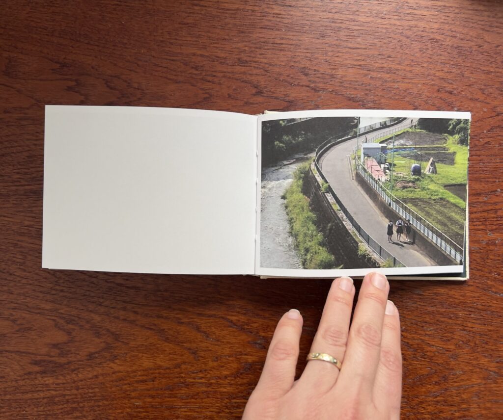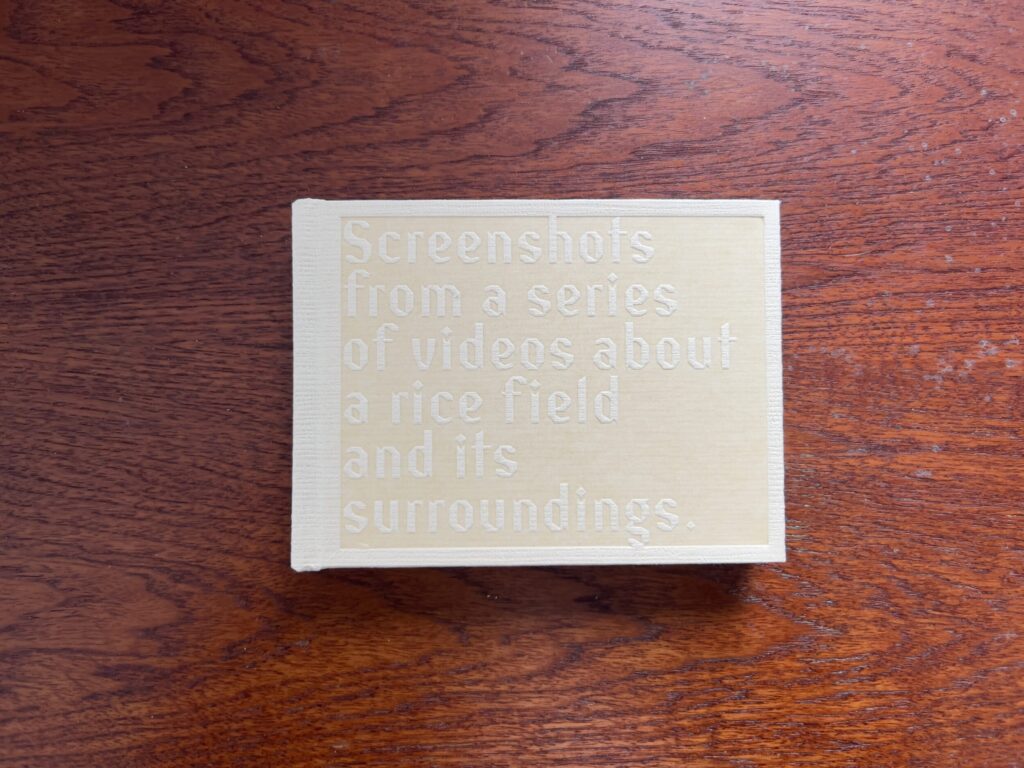 The book’s title, Screenshots from a series of videos about a rice field and its surroundings, is long but provides clear guidance for the reader. The title states exactly what is in the book without the complication of drama or sarcasm. Before the book is even opened, the title informs the reader that the images inside are screenshots taken from footage the artist has collected over time, and that the subject matter is the area surrounding a rice field.