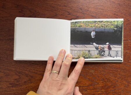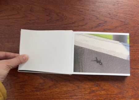 While Tortosa Santisteban’s Screenshots from a series of videos about a rice field and its surroundings could be filed as a rigid single-subject project, it transcends its parameters. The photobook showcases the depth and range of life that exists around this particular rice field near the artist’s window, where it feels warm and welcoming. The photobook is thoughtfully designed, with black endpapers that emulate the opening and closing credits of a film, a reinforcement and reminder of where the imagery originates. Its small, intimate size allows the reader to keep it close and engage with it differently, often more intimately. Its small sizes can easily fit into a pocket or backpack, without much fuss. This is a photobook that is lovely, thoughtful, and direct, deceptively simple but richly memorable.
