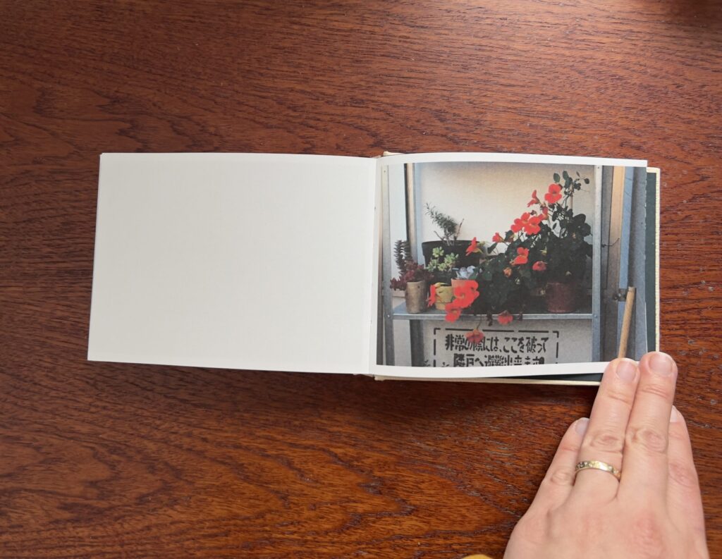 Confined largely to her immediate environment, Tortosa Santisteban began to meticulously document the world outside her small fifth-floor apartment in Kanagawa, specifically, from her vantage point from the balcony, which offered an expansive, almost theatrical view of a neighboring rice field and its surrounding residential and natural elements. The project grew out of a sustained daily practice of observation, captured not through still photography but through video recordings. This decision to film rather than photograph highlights a central concern with duration and change. The translation from moving image to still image adds an additional layer of deliberateness to an otherwise time-based process. The screenshots that are included in the book are not merely captures of peak moments, but chosen frames that convey the rhythm, the light shifts, and the subtle transformations and often overlooked interactions that occur within this slice of the world. The resulting book is an intimate meditation on the passage of time, the subtle drama of daily life, and the unique landscape of contemporary Japan, as viewed through the lens of a long-term expatriate.