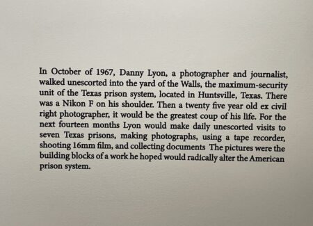 Given the consistent quality of the photographs and the artistic durability of the project as a whole, Lyon’s Texas prison pictures have re-emerged several times in recent years – in a 2015 gallery show (reviewed by Richard B. Woodward here), in his 2016 Whitney retrospective, and now again in this 2026 gallery show, on the occasion of a new gallery representation relationship established between Lyon and Howard Greenberg Gallery. So we have indeed seen many of these pictures (or their variants) before, but that doesn’t dilute their indelible persuasiveness and importance. That there are as many superlative vintage prints from this project still running around (enough to essentially fill this show, with a few later/larger prints sprinkled into the mix) is honestly somewhat surprising.