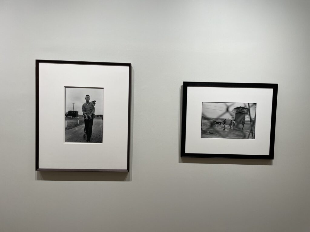 JTF (just the facts): A total of 35 black-and-white photographs, framed in black and matted, and hung against white walls in the main gallery space. (Installation shots and film stills below.)