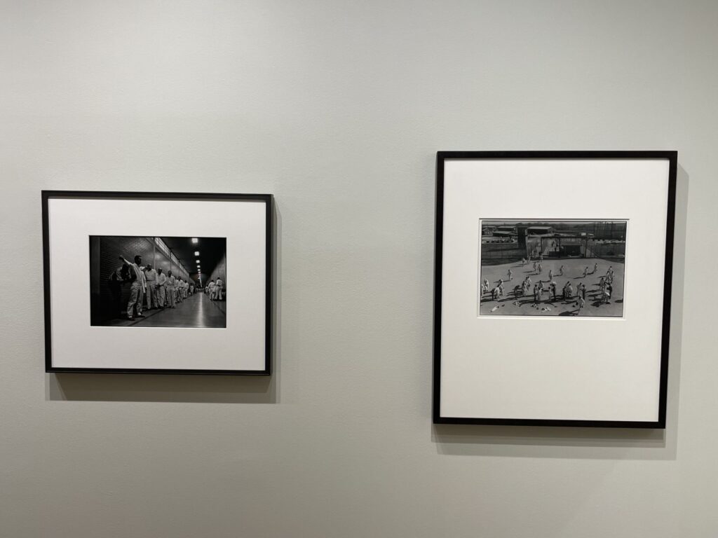 One way to place what is on view here in an aesthetic framework is to break the pictures down into groups of photographs alternately made inside and outside, as Lyon had to use different photographic strategies in each case. Inside, Lyon made smart use of the physical framing of the prisons, with fences and walls of bars repeatedly screening the prisoners, and peep holes and doors creating bounded opportunities to see inside – most of Lyon’s pictures inside the prisons used these hard edged features of the environment to remind us being closed in, our seeing constantly interrupted, broken up, and limited, just like an inmate’s.