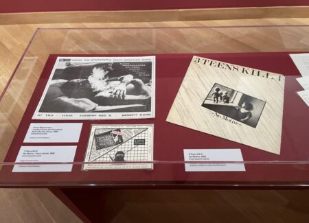 - (vitrine): 1 poster, 1980; 1 announcement card, 1980/1981; 1 vinyl record sleeve, 1982; 16 sheets of song lyrics, c1979-1983