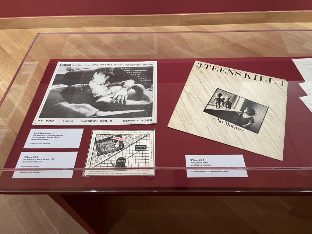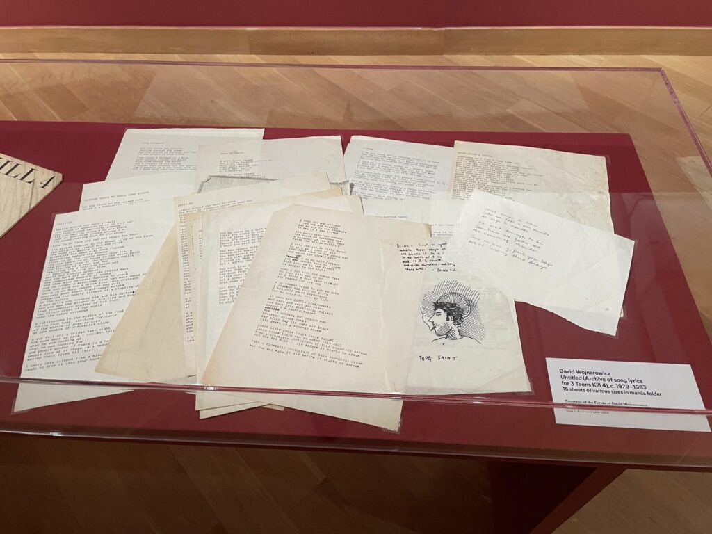 - (vitrine): 1 poster, 1980; 1 announcement card, 1980/1981; 1 vinyl record sleeve, 1982; 16 sheets of song lyrics, c1979-1983