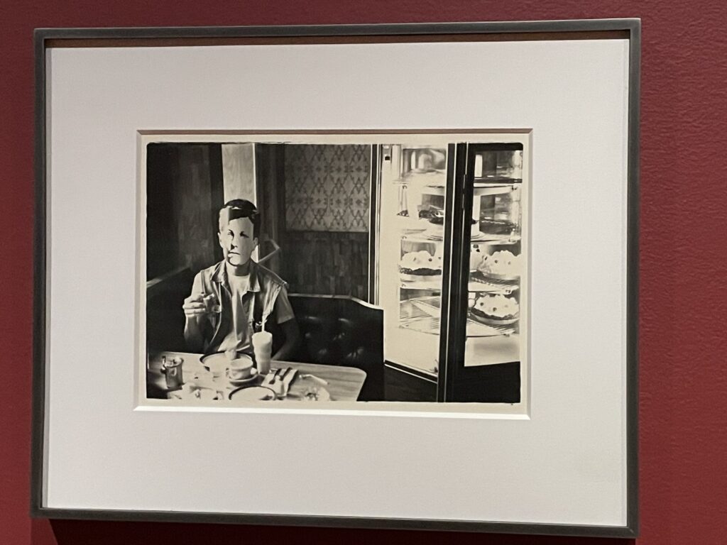 Placing Rimbaud on the beach near the carnival attractions at Coney Island or underneath the Brooklyn Bridge feels almost perfunctory, like checking off the spots he was supposed to visit. But as he slides further into Wojnarowicz’s life, things get much more interesting. He hangs out in diners (reading a newspaper or having a milkshake near a cake display), lingers on the streets near shop windows and neon-lit bars, stands near Times Square peep show theaters and a movie ticket kiosk, and rides the subway like any other New Yorker. But of course, placing the masked Rimbaud in these everyday places was entirely performative, inserting a particular presence into the flow of life and watching what might happen next. In many images, Rimbaud seems almost hyper real, sticking out from the surroundings; in others, that separation feels poignantly lonely, like an outsider with little hope of fitting in.
