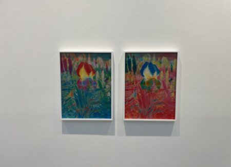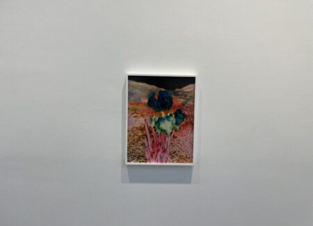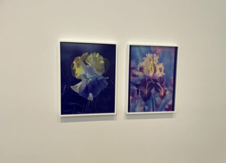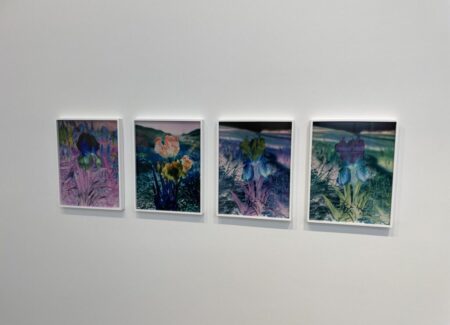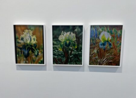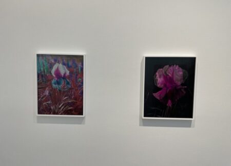 This approach ultimately yielded seven different variant images of the elusive Steichen iris (as seen in this show), each one given a different prefix by Oppenheim (including Mme, Mlle, Frau, Madamm, and others). As images of “impossible” flowers, the works fall into a long line of artificial and constructed floral compositions across the history of the medium (Joan Fontcuberta’s being perhaps the most notable). And while the AI system did make some decisions and extrapolations about the possibilities of petal shape and configuration, it didn’t take many risks with the overall framing or composition of the “photographs” – the plants are shown straight on, isolated in natural settings, some with a hint of horizon in the background.