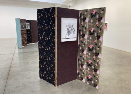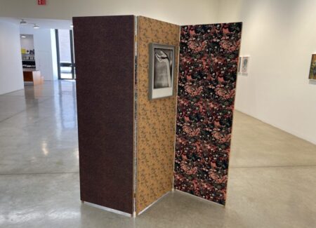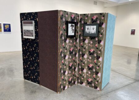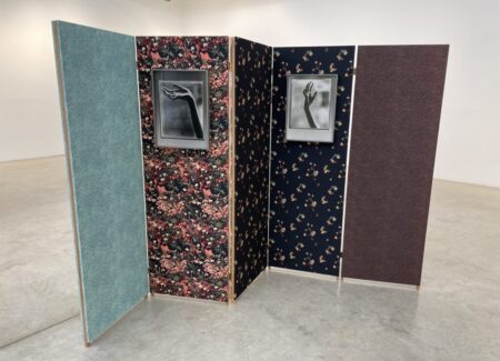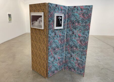 - 1 three-paneled paravent with 3 attached gelatin silver prints, 2025, sized roughly 72×71 inches