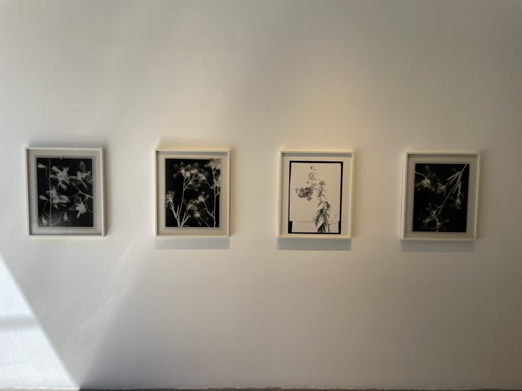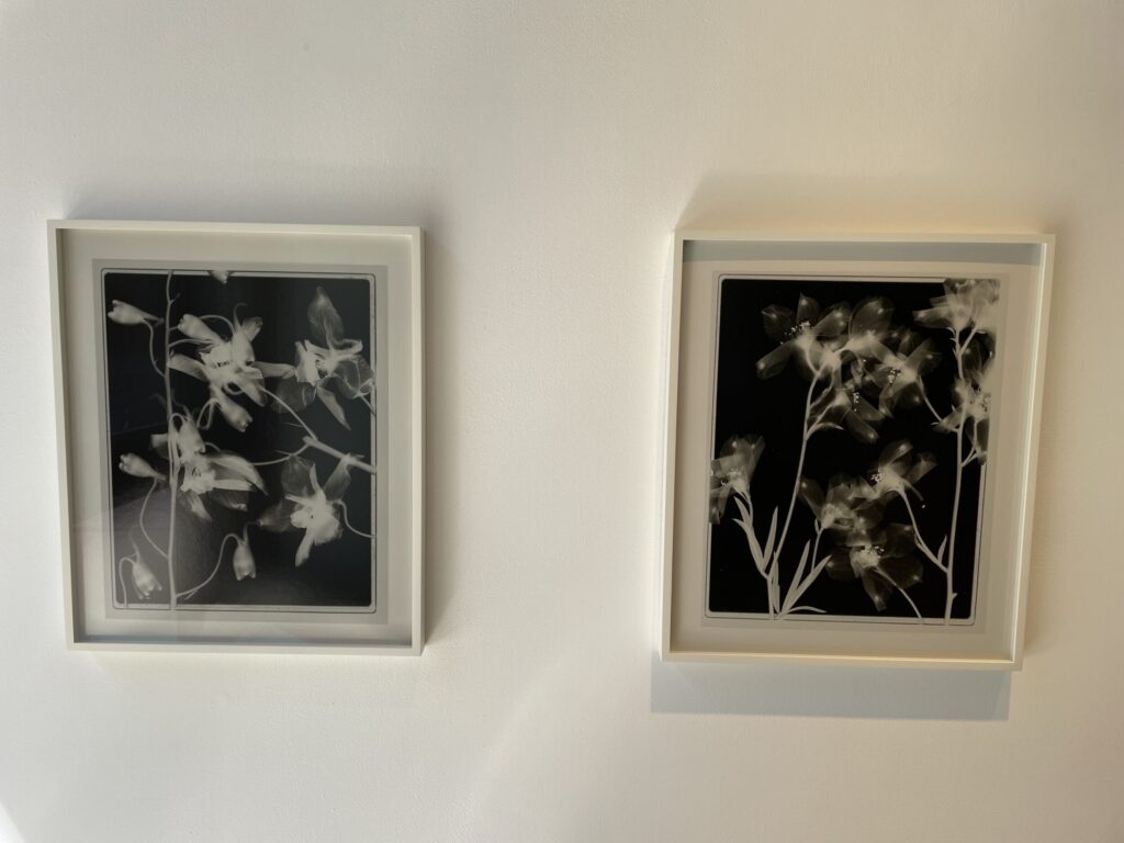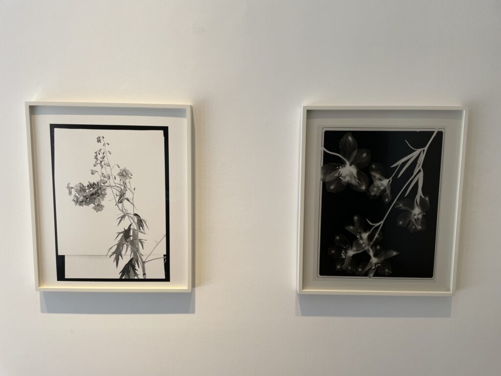 The paravents also provide handy space for the display of a few additional photographs. These black-and-white works were largely made by Oppenheim while working in the Steichen archives, as reprints of Steichen images she found there or stills of florals on display nearby. She then went back to her own darkroom and made several more floral images (and photograms) inspired by Steichen’s examples, creating yet another layer of thoughtful rework and re-interpretation. In this way, the paravents feel nested, with Oppenheim working inside Steichen, bringing her own artistic perspective to his world, and again, knowledge of the backstory enriches the interpretation of the resulting objects.