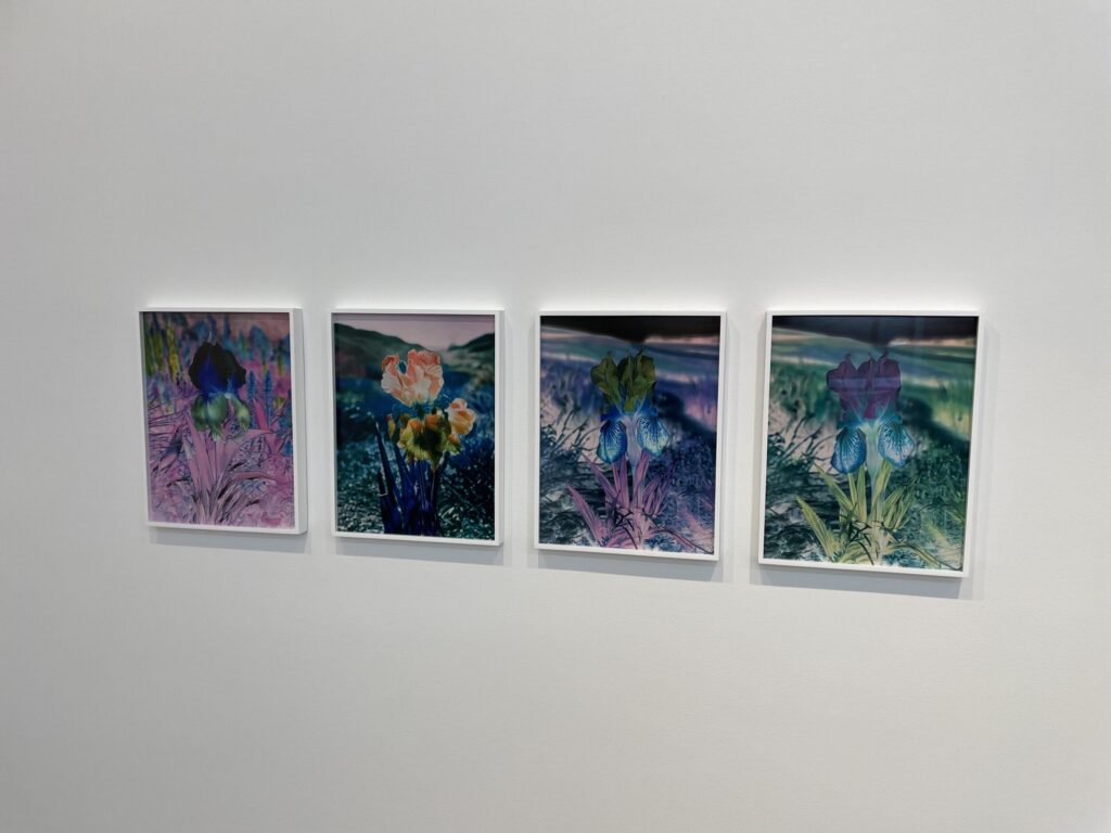 This approach ultimately yielded seven different variant images of the elusive Steichen iris (as seen in this show), each one given a different prefix by Oppenheim (including Mme, Mlle, Frau, Madamm, and others). As images of “impossible” flowers, the works fall into a long line of artificial and constructed floral compositions across the history of the medium (Joan Fontcuberta’s being perhaps the most notable). And while the AI system did make some decisions and extrapolations about the possibilities of petal shape and configuration, it didn’t take many risks with the overall framing or composition of the “photographs” – the plants are shown straight on, isolated in natural settings, some with a hint of horizon in the background.