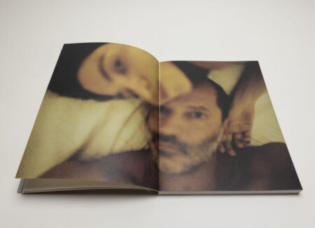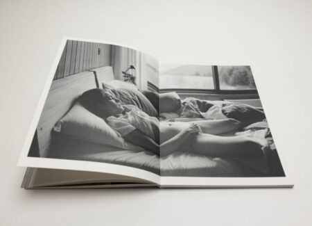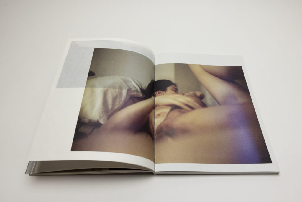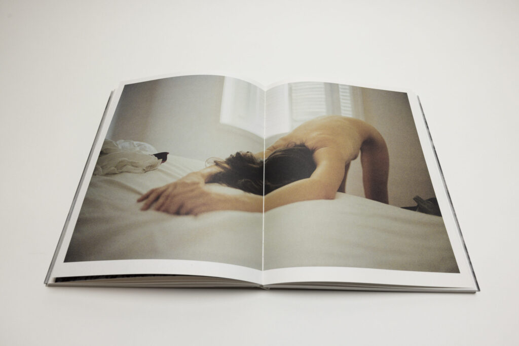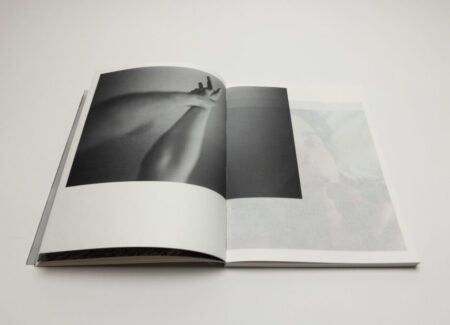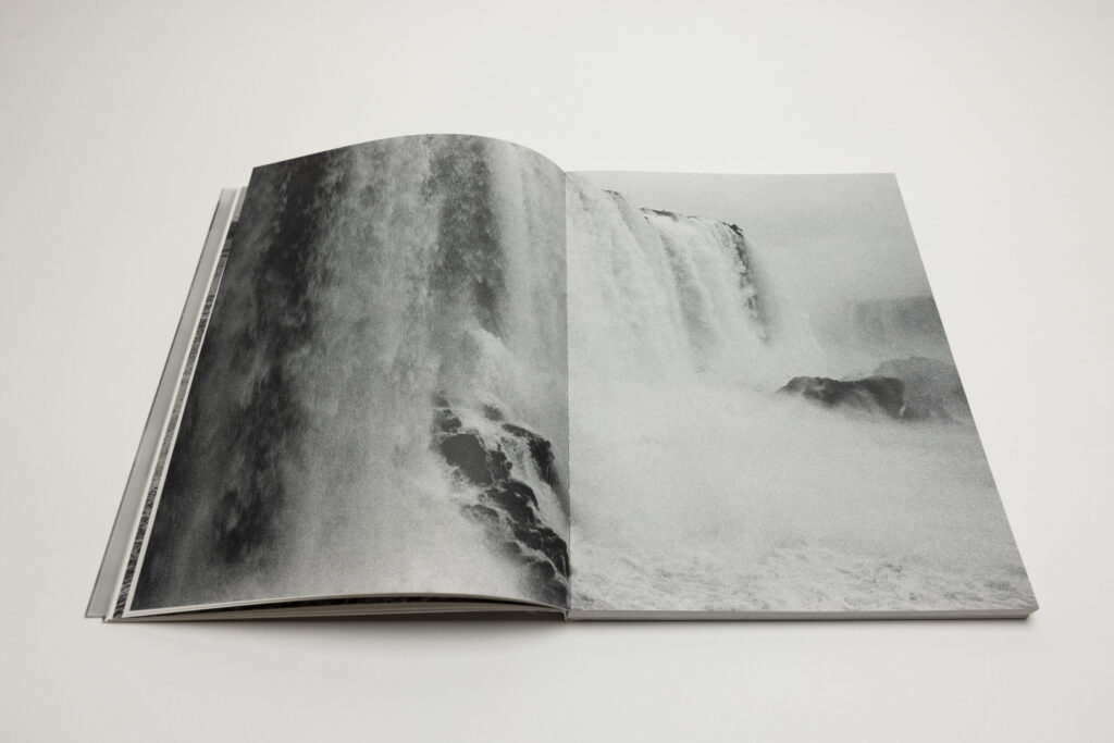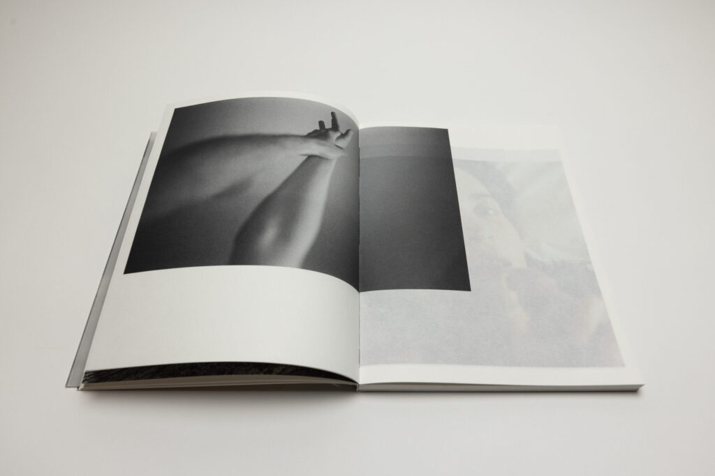 Onda Avalanche Vulcão has been produced with exceptional quality and designed with refined elegance. The cover photograph of a nude woman gently leaning forward (we can assume it is Manoella) is overlaid with a landscape printed on a transparent jacket. The title appears in the left top corner of the jacket, in three lines, while the artists’ names are placed at the bottom. The photobook immediately feels intimate and tender. Printed using four different types of paper, it invites tactile engagement, and the photographs move between full-bleed landscapes and close-up portraits, creating an exciting visual flow. There are no captions, page numbers, or any other design elements, directing our attention entirely to the visual flow, and the book easily lays flat, making the interaction even more deliberate and enjoyable.