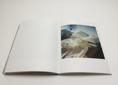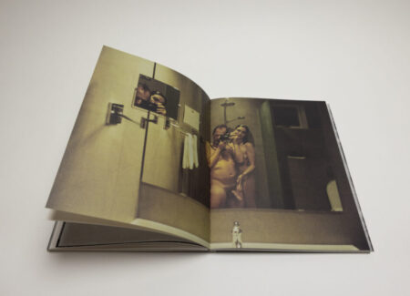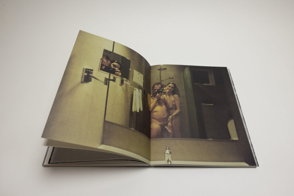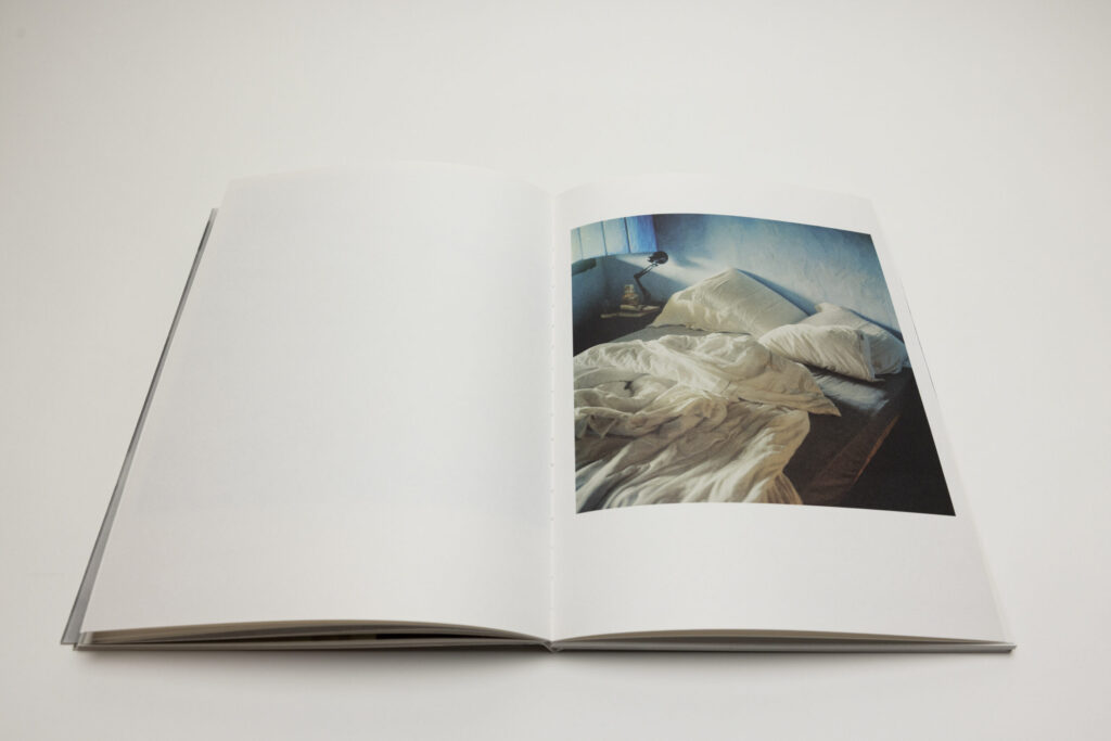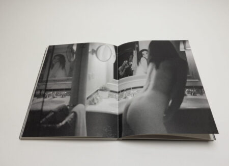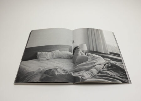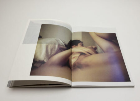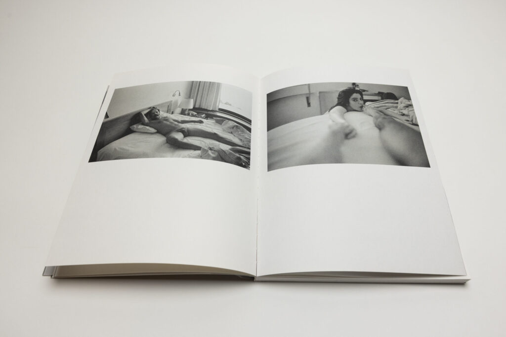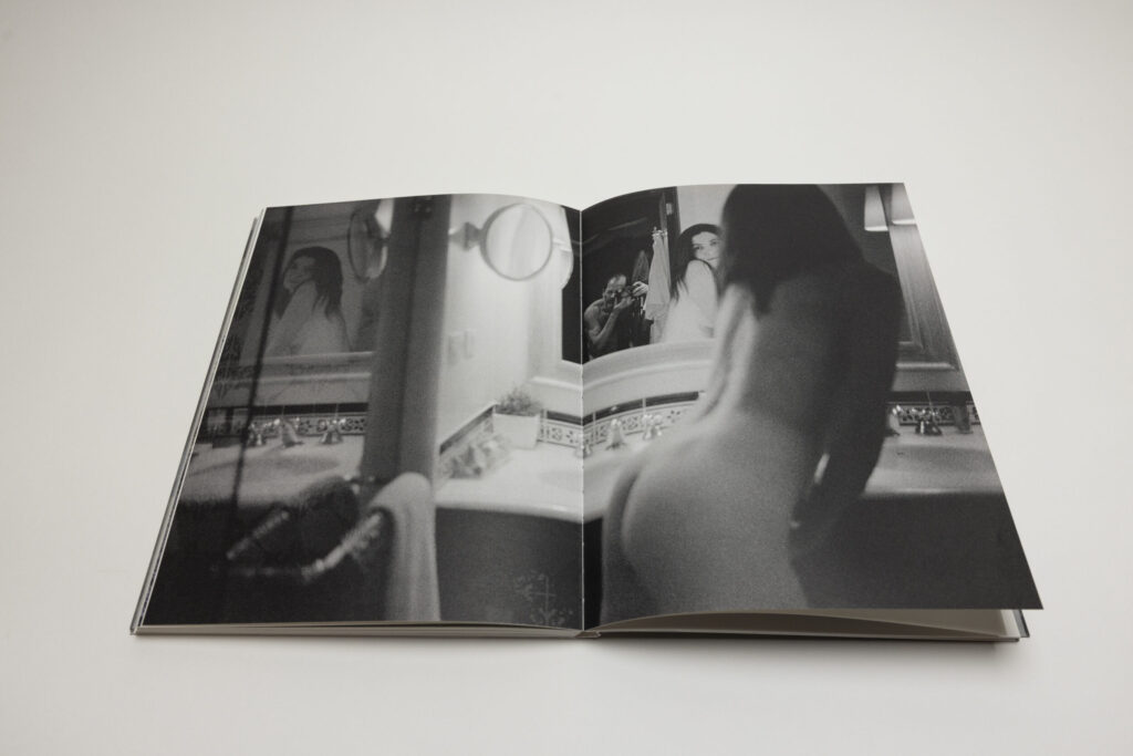 Onda Avalanche Vulcão has been produced with exceptional quality and designed with refined elegance. The cover photograph of a nude woman gently leaning forward (we can assume it is Manoella) is overlaid with a landscape printed on a transparent jacket. The title appears in the left top corner of the jacket, in three lines, while the artists’ names are placed at the bottom. The photobook immediately feels intimate and tender. Printed using four different types of paper, it invites tactile engagement, and the photographs move between full-bleed landscapes and close-up portraits, creating an exciting visual flow. There are no captions, page numbers, or any other design elements, directing our attention entirely to the visual flow, and the book easily lays flat, making the interaction even more deliberate and enjoyable.