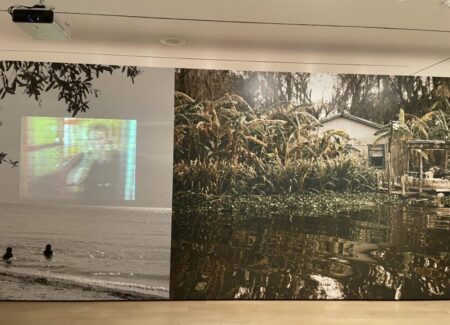 New Orleans is the final location in this globe trotting spin, with its layered cultural and racial legacies providing a conceptual foundation for various artistic approaches. L. Kasimu Harris’s images from his series “Vanishing Black Bars & Lounges” lead the way here, not only providing visibility to institutions and safe spaces for black residents that are slowly being displaced, but capturing them with a sophisticated eye for color and emotional nuance; this is a well-constructed, self-contained photographic project, executed with sensitivity. Renee Royale’s decayed images of polluted sites around Louisiana offer only hints of horizons and trees, their surfaces pushed toward the melting chemical abstraction of artists like Daisuke Yokota; her approach of burying her instant prints in dirt from the various locations follows a path trod by others in terms of incorporating local materials into her photographic process, the resulting enlarged images scarred and eroded by ecological destruction. And Gabrielle Garcia Steib’s installation of archival imagery and video footage takes aim at the migratory interconnection of Latin America with the southern US, linking Nicaragua, Mexico, and Louisiana into one sweep of family history, but her artistic edits and interventions aren’t nearly enough to transform the source material into something more resonant and durably original.