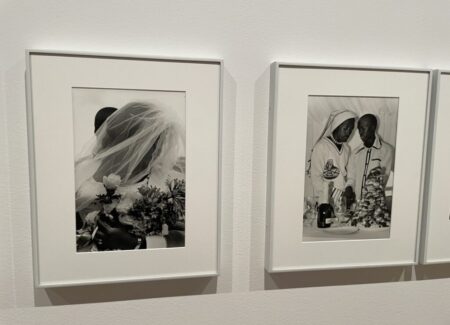 The Johannesburg group is similarly heavy on conceptual (and personal) resonance, but light on compelling photography. Lindokuhle Sobekwa’s wall-filling family tree installation is the strongest in the group, its expressive branches filled with headshots, snapshots, names, and obscure symbols; two framed images on the sides allude to Sobekwa’s very real talents as a photographer, but the installation feels more archival and investigative than newly seen. Lebohang Kganye’s contributions, in the form of two mechanical moving image sculptures, are even more dramatic and technically imaginative (particularly in the way individual images move up and down creating cast shadows), and their backstory (visualizing a science fiction tale of the return of the late Nelson Mandela) is certainly creative, but the novelty of their activated construction feels more durable than their visuals. And both the works of Sabelo Mlangeni and Gabrielle Goliath key in on visibility, with Mlangeni documenting the overlooked joy of various wedding festivities in South Africa (in different combinations of men and women) and Goliath grieving the loss of a childhood friend with stand-in portraits for each year since her killing. Again, the underlying ideas and intentions are sensitive and emotionally rich, but the photographs themselves aren’t entirely memorable, even when they touch on the fragility of those feelings.