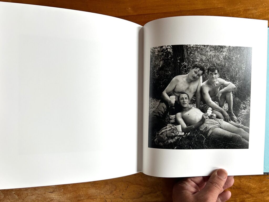 The book includes fifty monochromes. Most of photographs are square format, with a few oblong frames sprinkled in the mix. This is the only slight variance in a steady drumbeat of photos of equal size and layout. Each spread shows one image on the right-facing page, all well printed with lush tonality. The pacing of pictures is as regular as a metronome. Tick tock tick… As the reader is lulled into a relaxed daze, the photos gradually work their cumulative spell. They convey a spirit of companionship, satisfaction, and pride.
