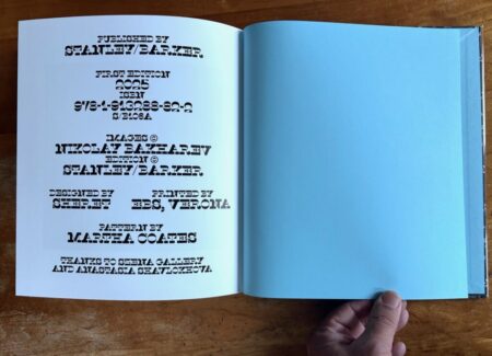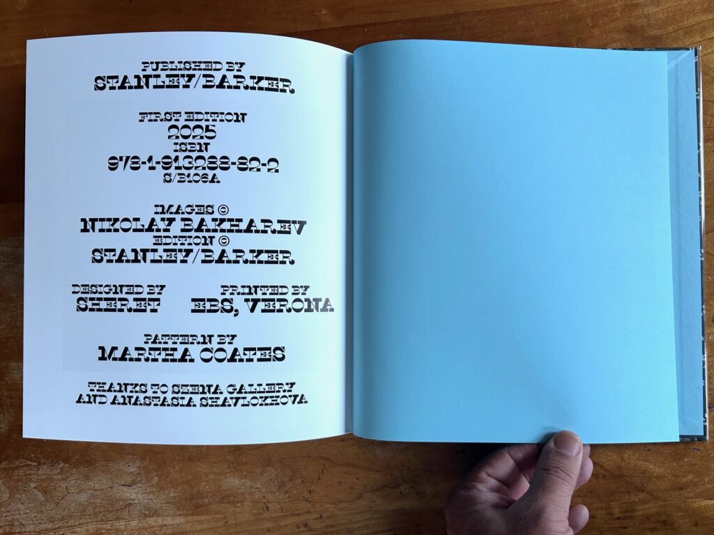JTF (just the facts): Published in 2025 by Stanley/Barker (here). Hardback with tipped in cover photograph (two versions available), 24×27 cm, 120 pages, with 50 monochrome photographs. Design by Sheret. (Cover and spread shots below.)