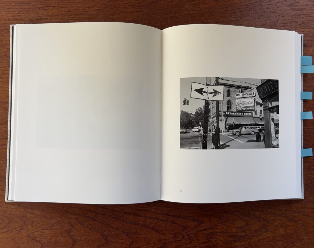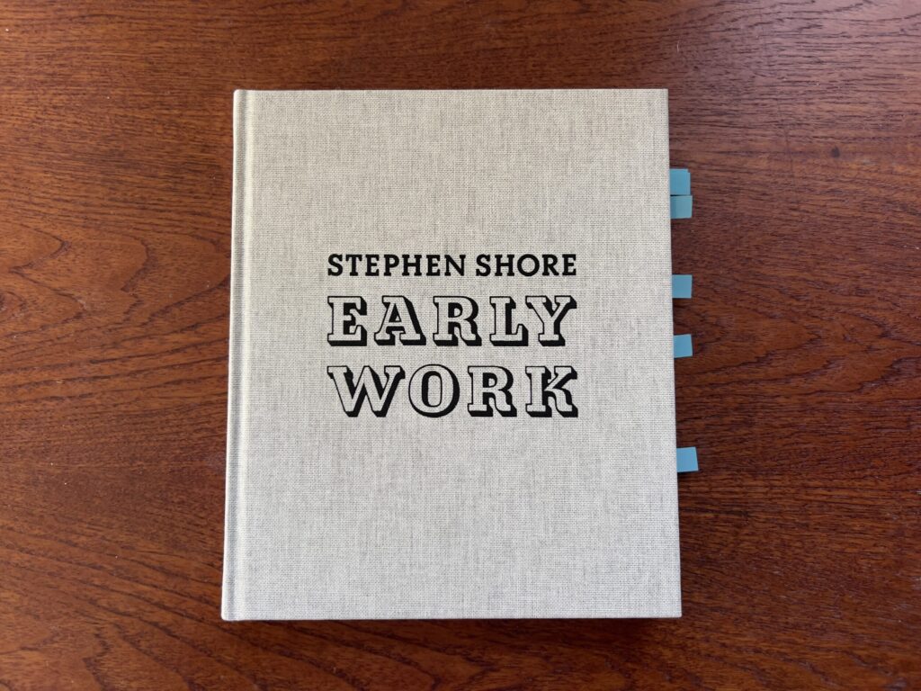Shore’s recent book Modern Instances: The Craft of Photography (MACK, 2022) is an experimental memoir in which the artist wrote in great detail about the variety of people, events, and various touchstones that influenced his path as an artist. That book, now available in a second extended edition, is generous in its offerings of insight into the maker’s mind, and its writing was the start of the artist looking back at his life and putting the story together. This is where some of his early pictures were widely seen for the first time, unearthed from the author’s archive to craft his story of becoming. Early Work feels like an apt outgrowth or extension of Modern Instances, particularly in the way that the essay in Early Work titled “The Pre-History of These Photographs” is designed and formatted much like his aforementioned memoir, adding still more detail and richness to the story of the artist’s life.