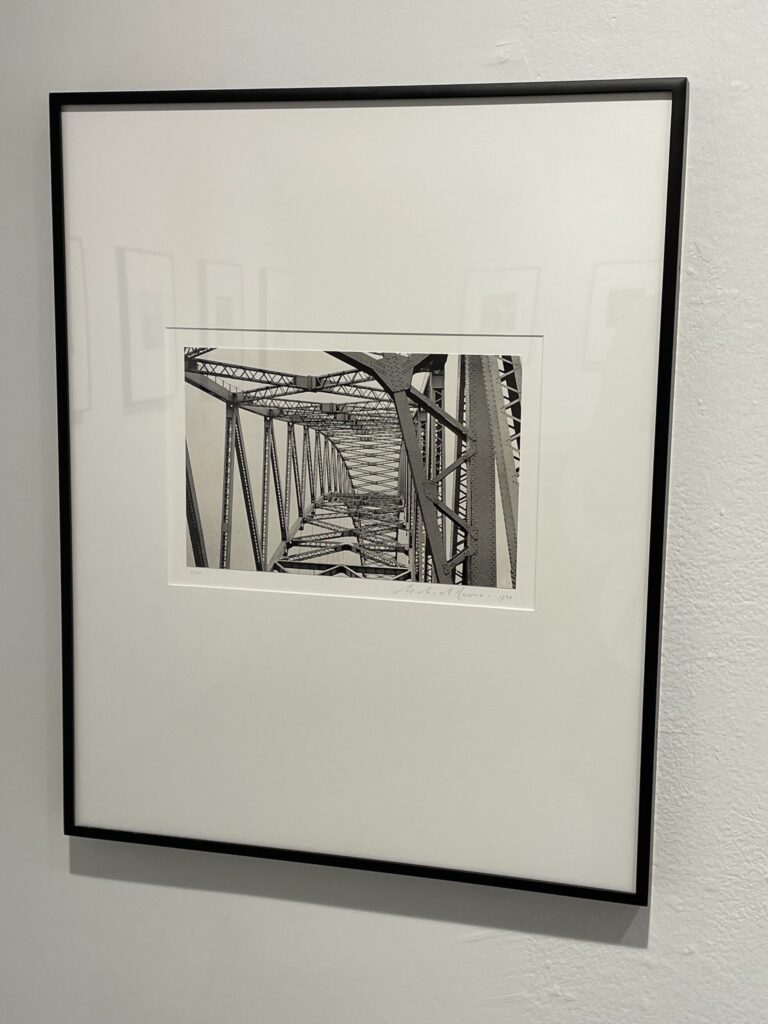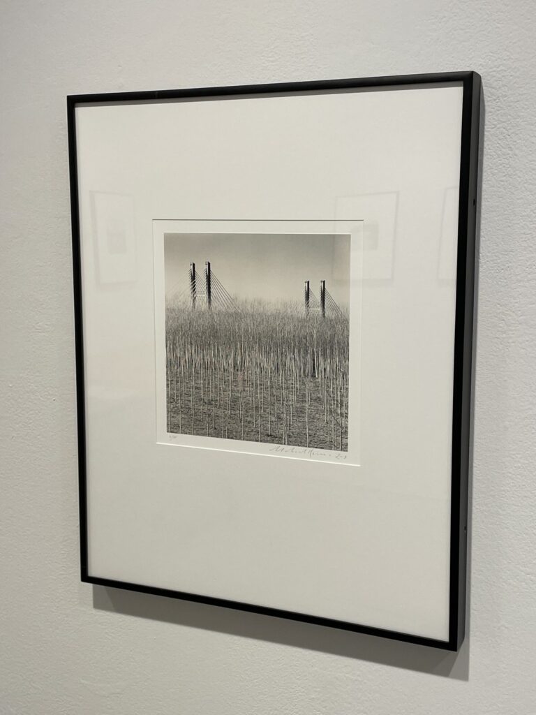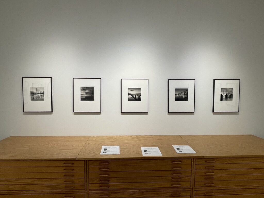 Kenna is a classic 20th century landscape photographer, in that his subject is essentially always the land itself – mountains, rivers, trees, forests, oceans, hills, lakes, and the like, in all seasons from summer to winter, often in dialogue with the built intrusions and structures of man, from fences and houses to city buildings, and yes, bridges – and his analog black-and-white aesthetics stay largely within the traditional boundaries as drawn by his photographic predecessors. A spin through nearly any Kenna exhibit will elicit compositional echoes of other past masters, a hovering feeling of I’ve seen this kind of thing before, but in an honest, familiar, and reverent way, with homage paid to the way these scenes have been memorably captured previously. Kenna isn’t pretending that those influences don’t exist – quite the contrary, he is leaning in to these historical European, American, and Asian artistic frameworks and adapting them as they relate to his own contemporary picture making.