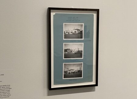 In more recent years, Walther applied similar logics and frameworks to vernacular discoveries, seeing structured thinking and sequential image making in a range of unlikely photographic places. Here we see anonymous circulating views of a 1940s era gas station in Idaho, in-process construction images of a viaduct in France, and automated images of Saturn from the Voyager 2 space probe, each a resonant example of Walther’s thinking process. The three projects also allude to adjacent modes of analyzing photography, exploring time-based series as well as alternative processes (like the cyanotypes and NASA artifacts.)