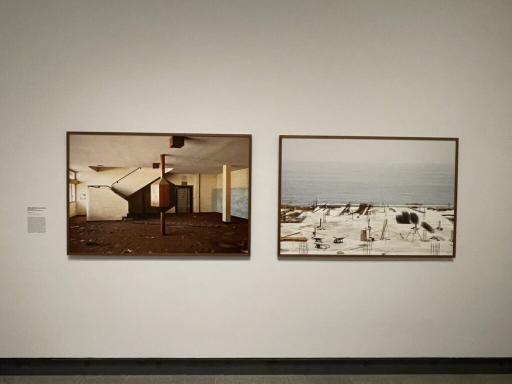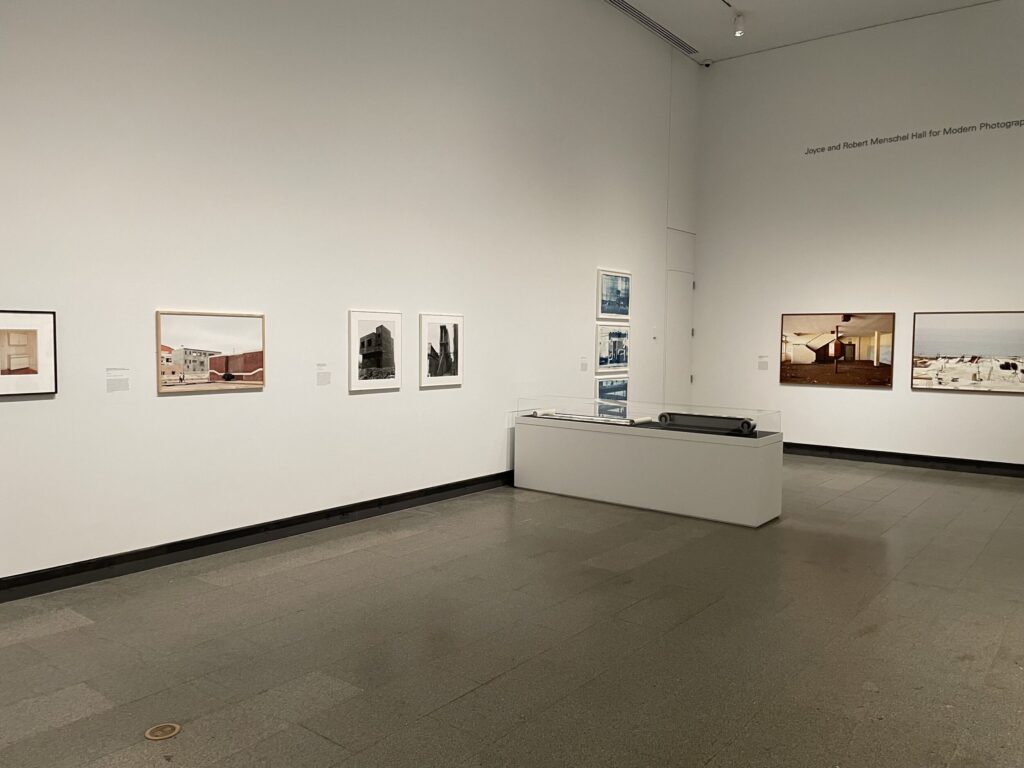 In terms of organization, View Finding is very much a one-of-each, tips-of-the-waves survey, with works from different points in Walther’s collecting history thoroughly mixed together. A 15-piece grain elevator typology by the Bechers is a decent place to start, as it roots us in Walther’s early interest in German aesthetics, while also signaling his ongoing exploration of the built environment, structured image-making, and multi-image sets and series. Other works by Thomas Ruff (an early interior) and Günther Förg (an extra large print with a steep Bauhaus-like vantage point) amplify these ordered ideas and provide an intellectual foundation on which Walther then continued to build.