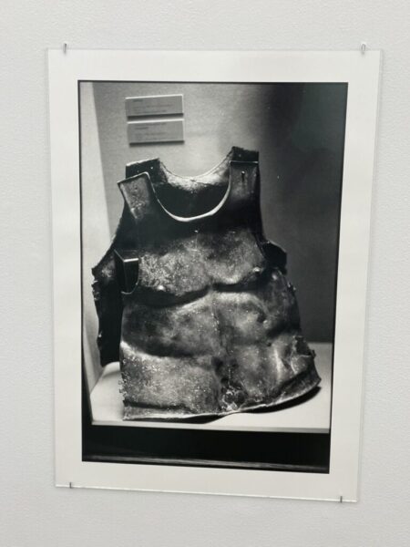 Displays of armor as entrenched representations of violence. Zoe Leonard (from 1991/2025) at Maxwell Graham.